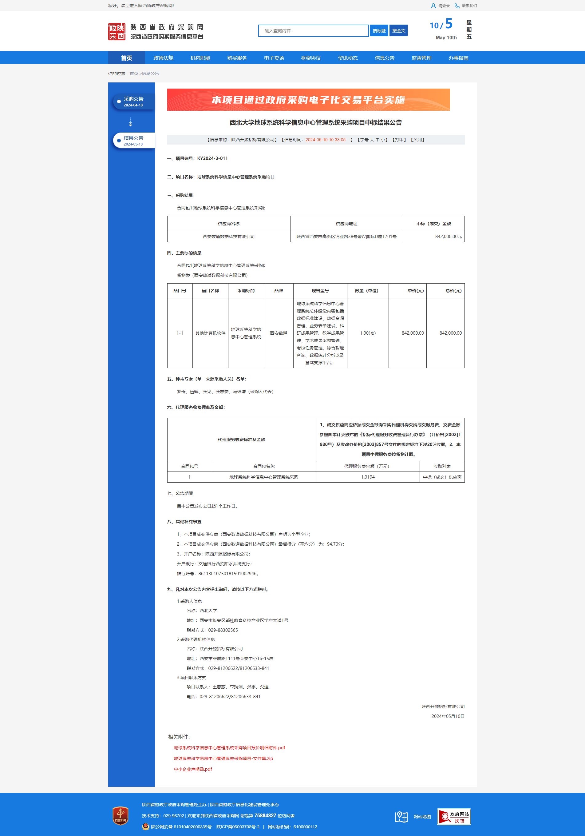 西北大学地球系统科学信息中心管理系统采购项目中标结果公告