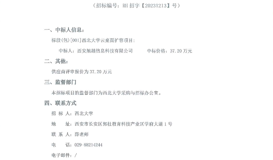 西北大学云桌面扩容项目单一来源采购成交结果公告