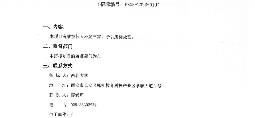 西北大学高山区无人机载激光雷达系统采购项目废标公告