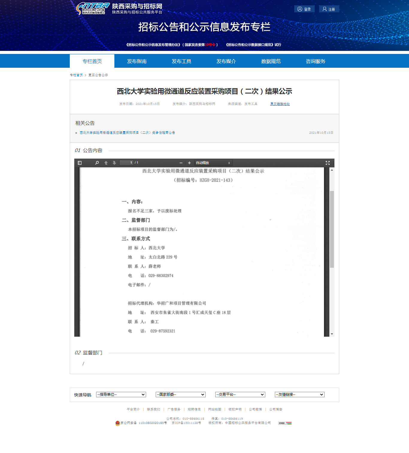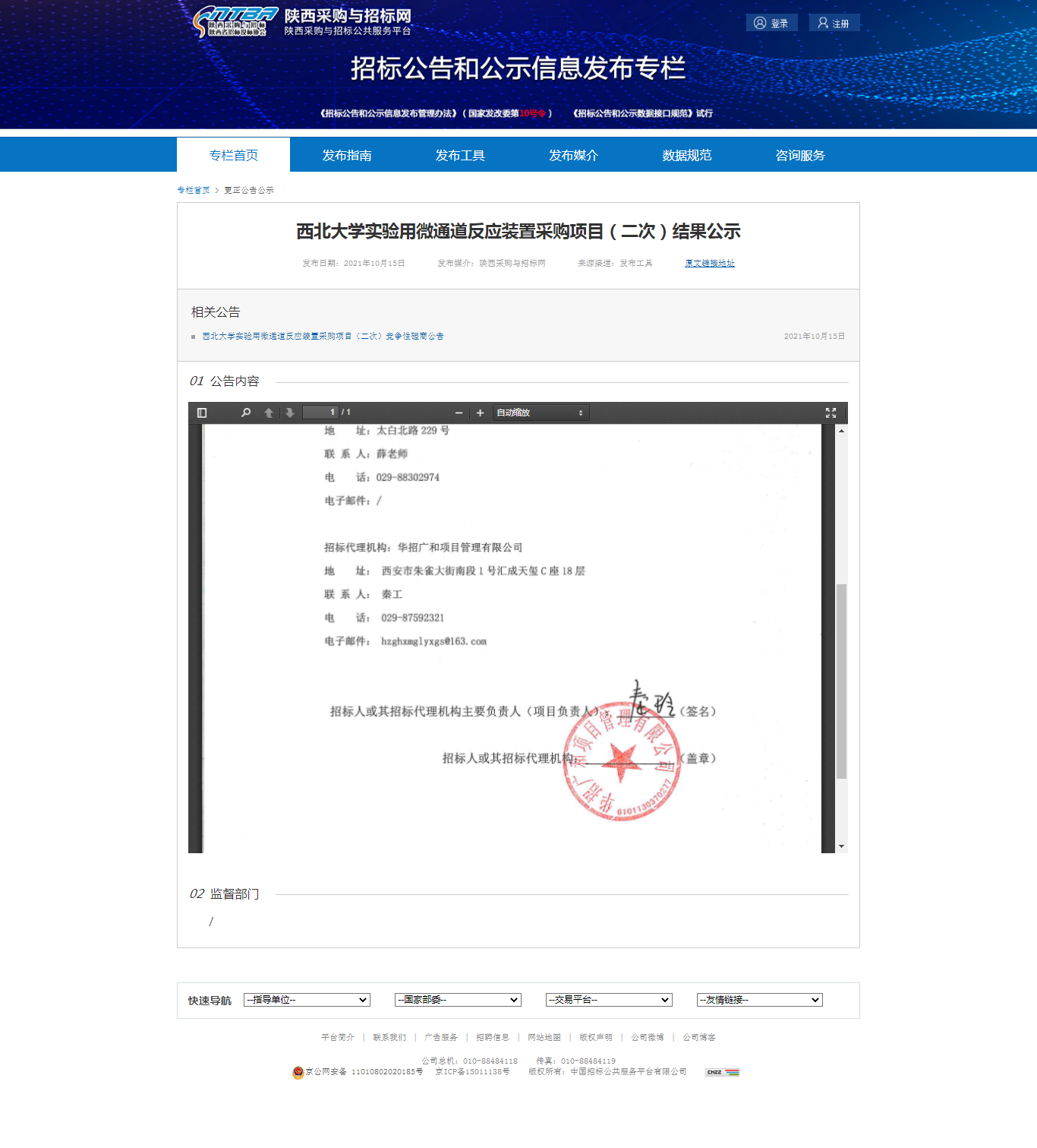 西北大学实验用微通道反应装置采购项目(二次)结果公示