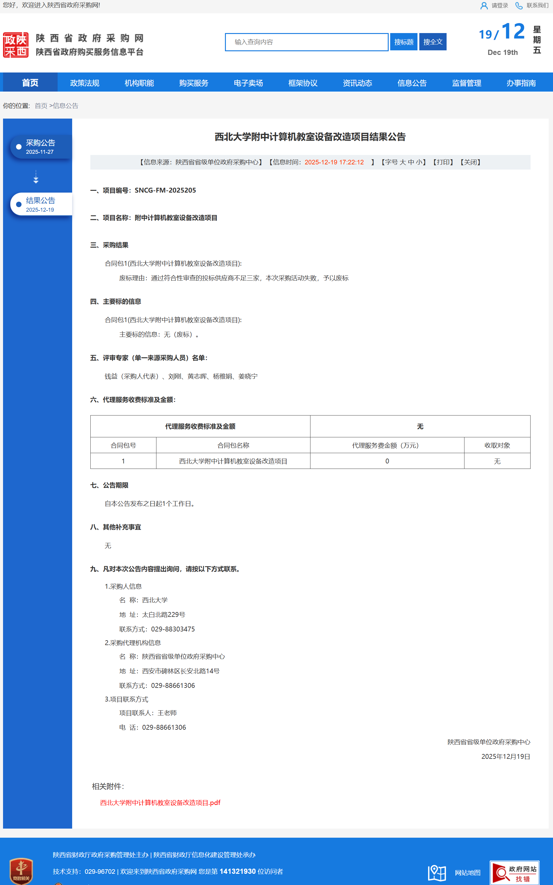 西北大学附中计算机教室设备改造项目结果公告
