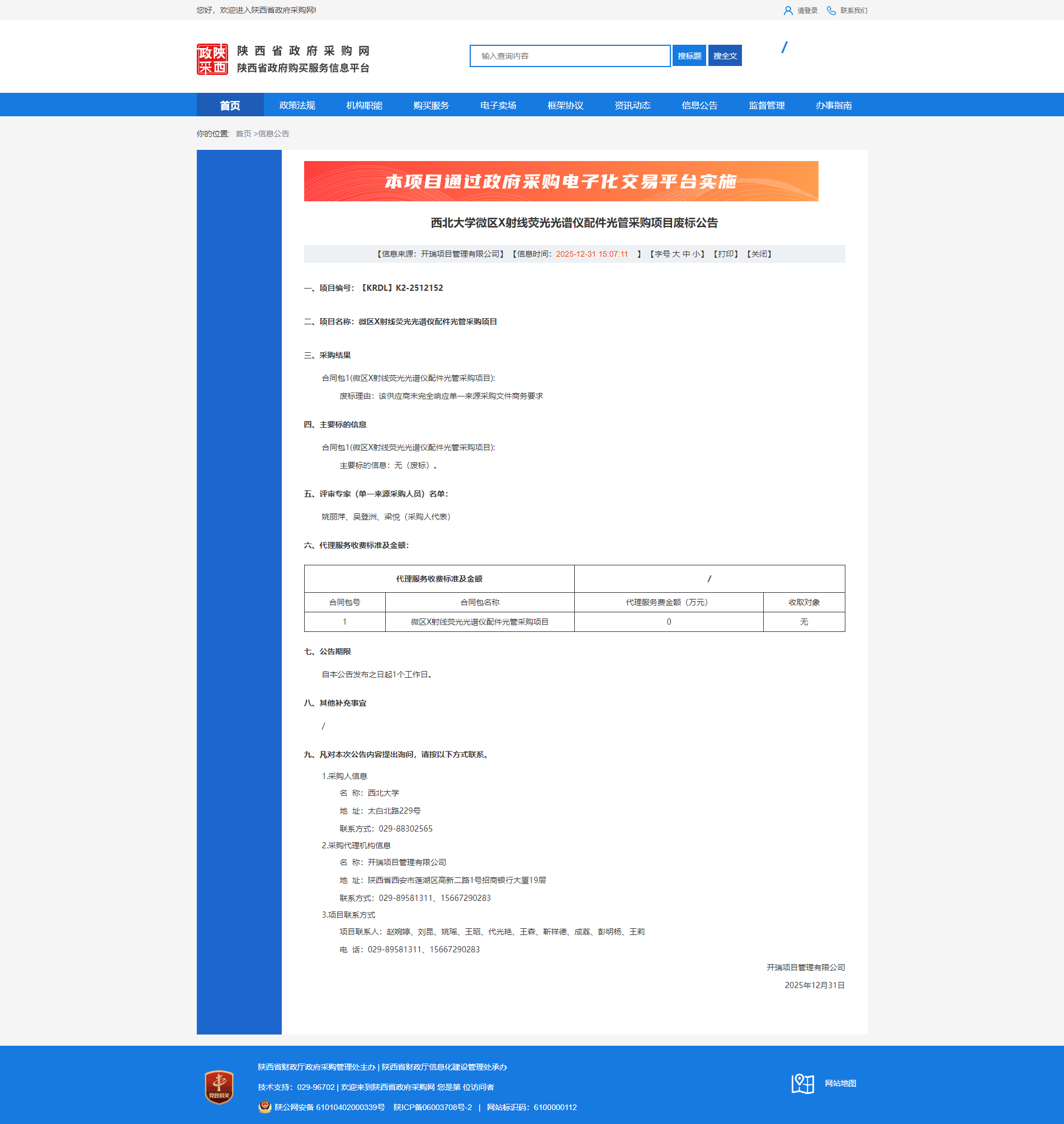 西北大学微区X射线荧光光谱仪配件光管采购项目废标公告