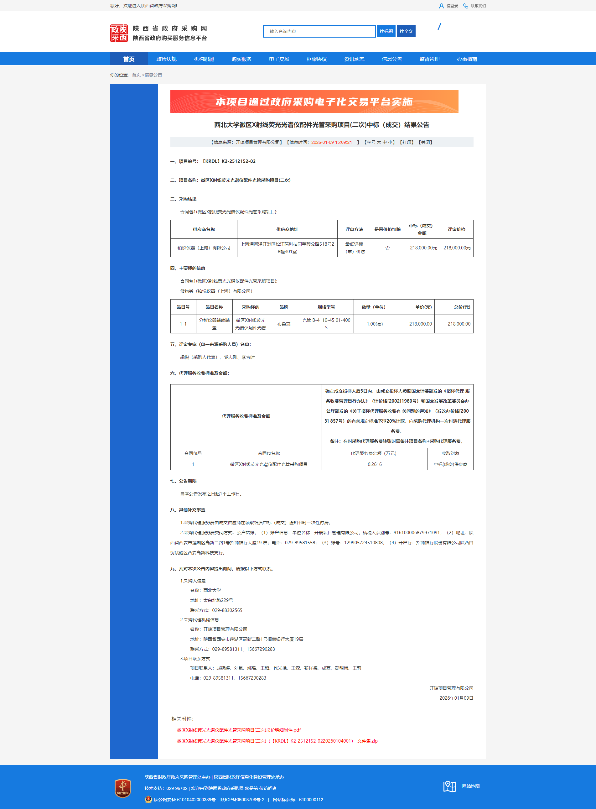 西北大学微区X射线荧光光谱仪配件光管采购项目(二次)中标(成交)结果公告