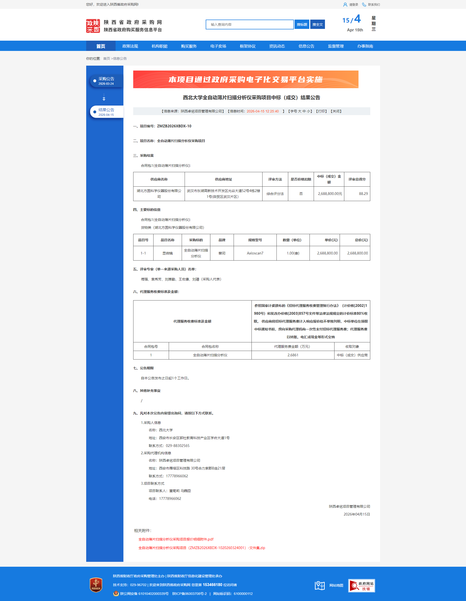 西北大学全自动薄片扫描分析仪采购项目中标(成交)结果公告