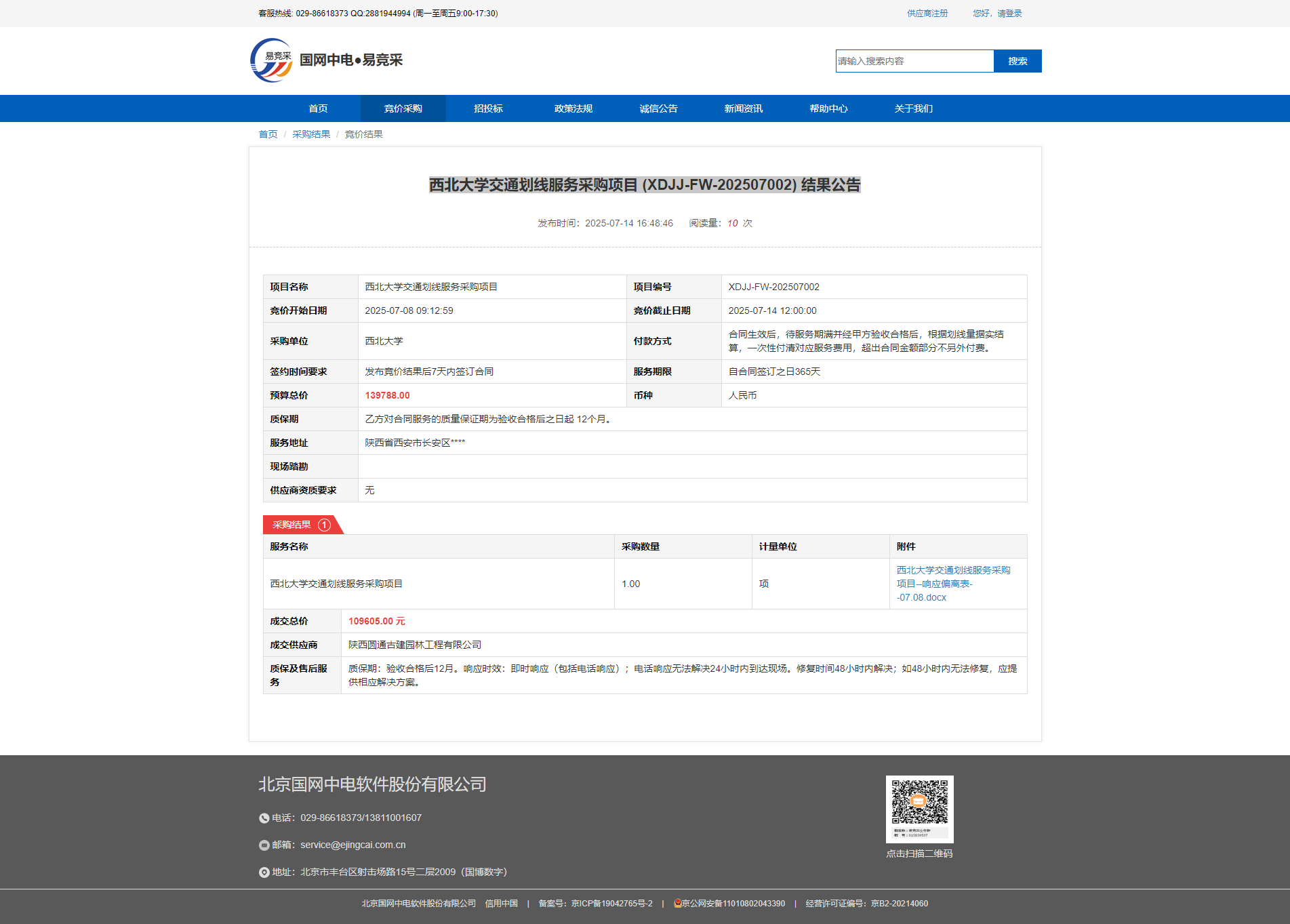 西北大学交通划线服务采购项目 (XDJJ-FW-202507002) 结果公告