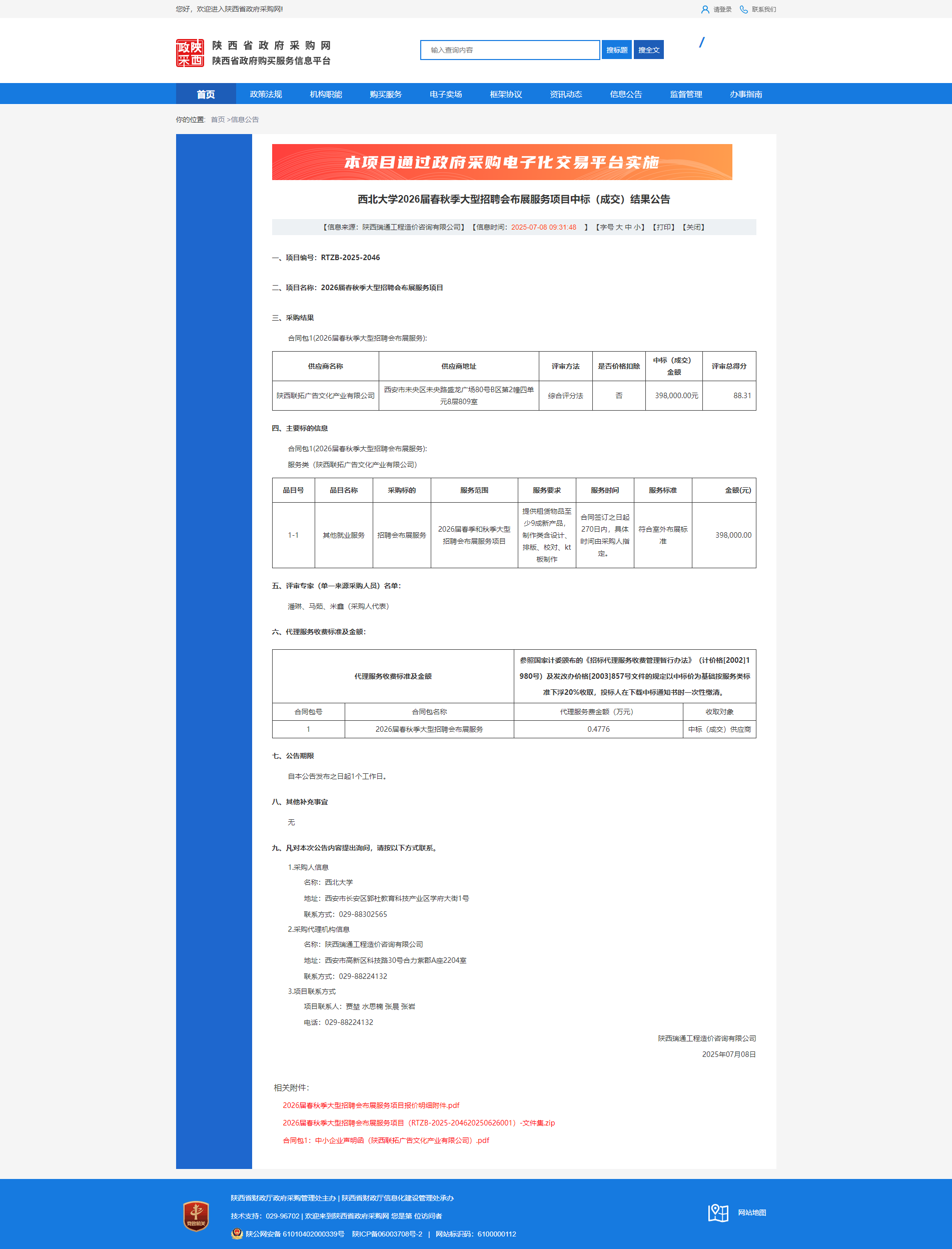 西北大学2026届春秋季大型招聘会布展服务项目中标(成交)结果公告