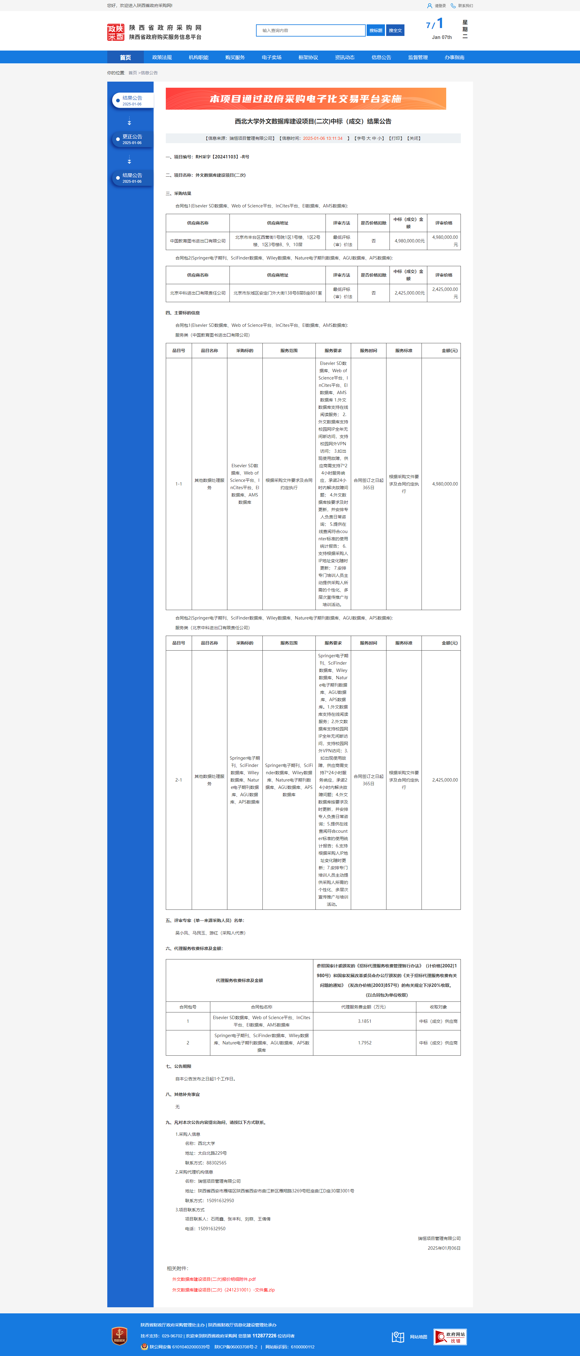 西北大学外文数据库建设项目(二次)中标(成交)结果公告