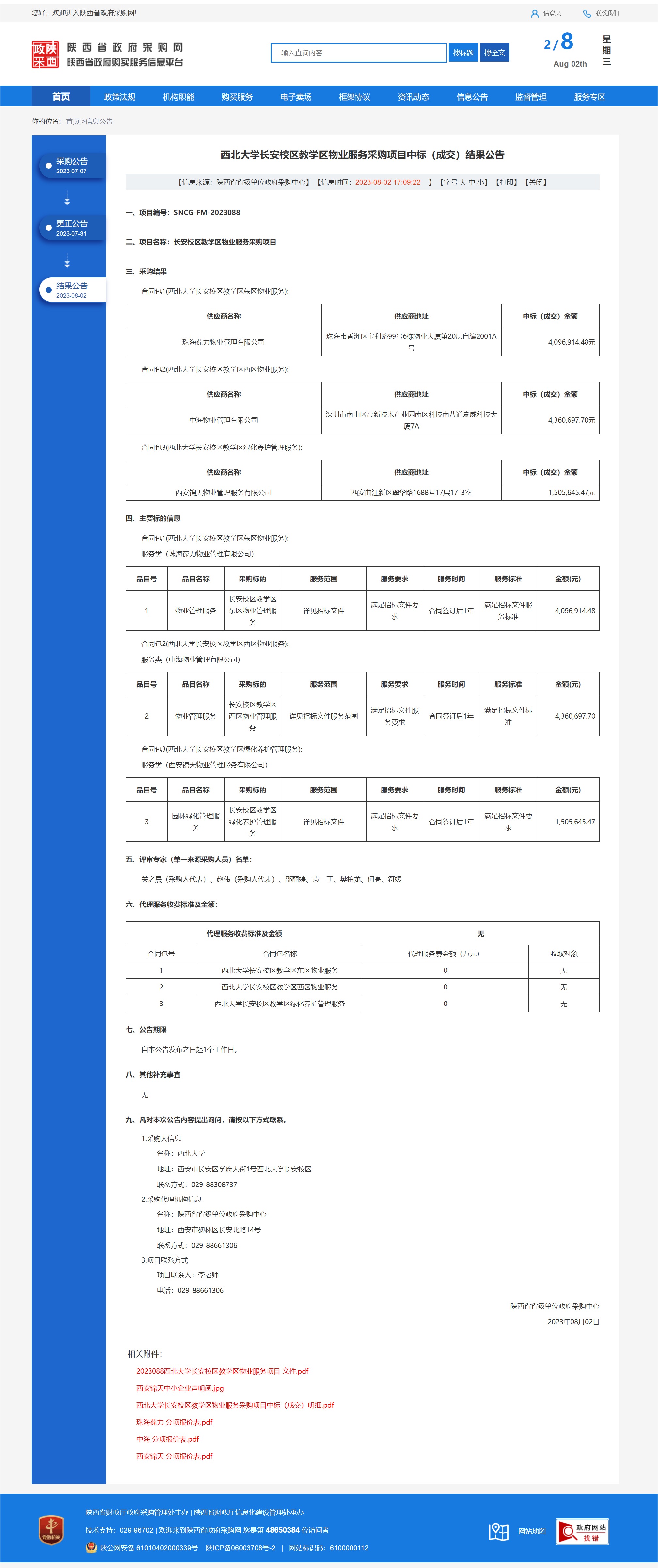 西北大学长安校区教学区物业服务采购项目中标(成交)结果公告
