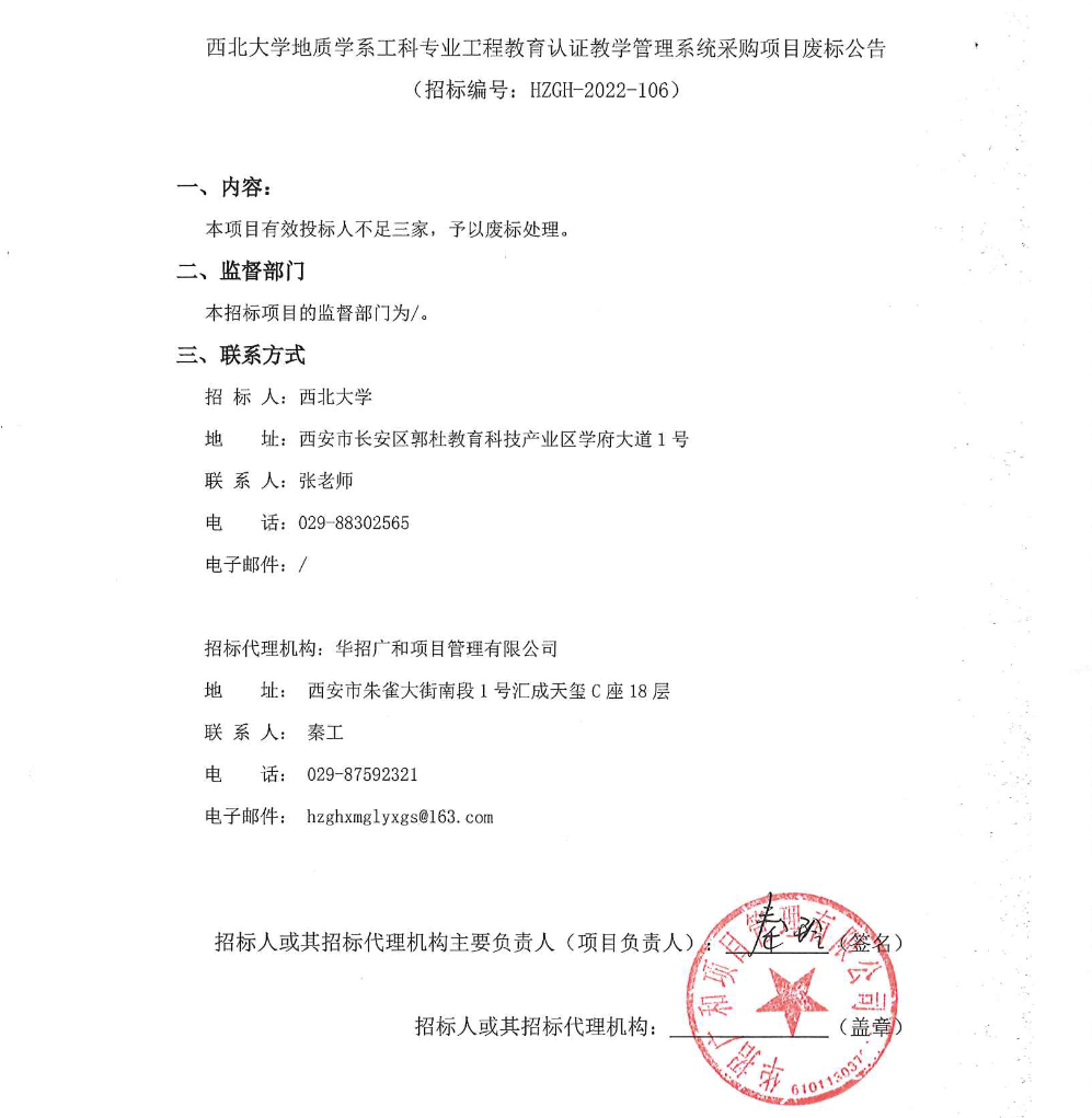 西北大学地质学系工科专业工程教育认证教学管理系统采购项目废标公告