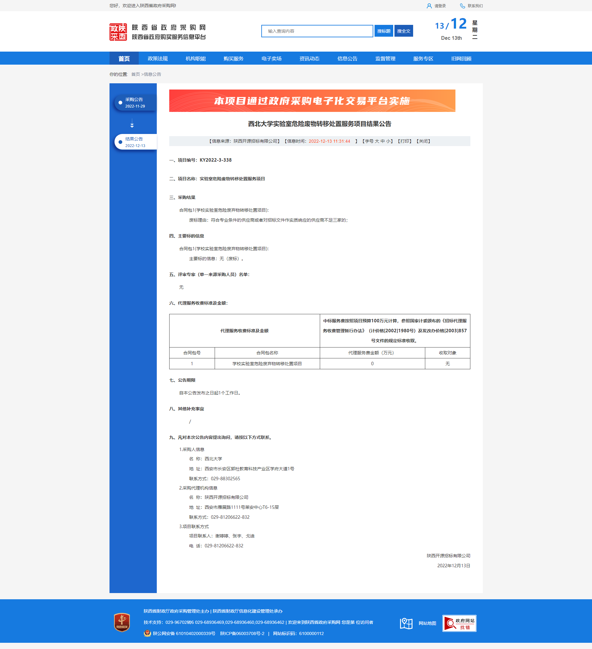 上一篇:西北大学实验室危险废物转移处置服务项目(二次)竞争性磋商公告