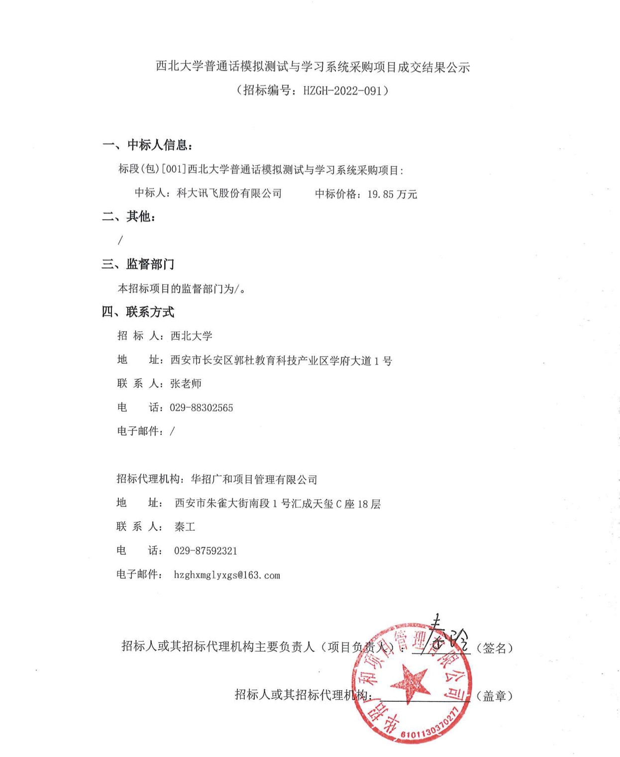 西北大学普通话模拟测试与学习系统采购项目成交结果公示
