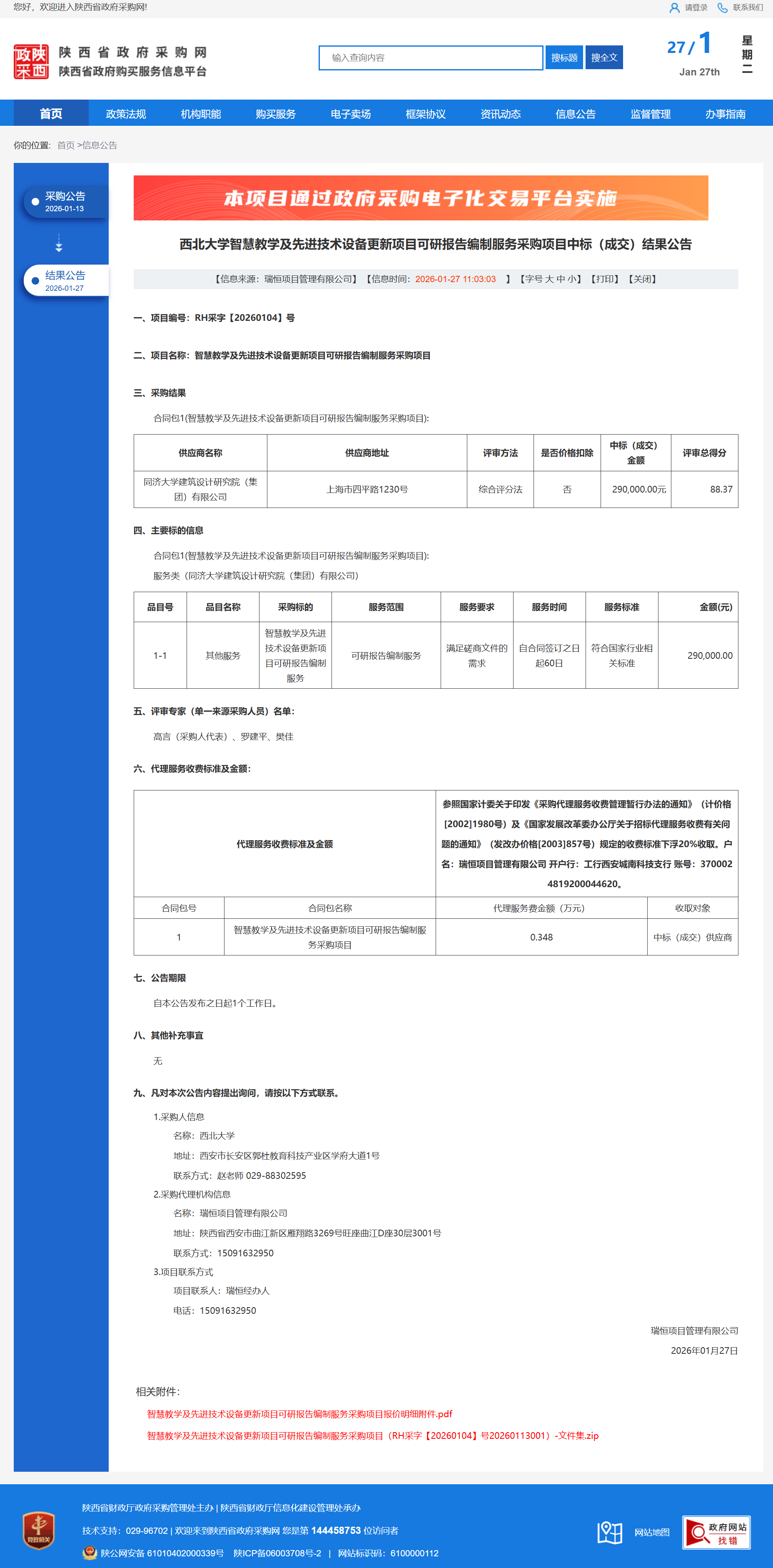 西北大学智慧教学及先进技术设备更新项目可研报告编制服务采购项目中标(成交)结果公告