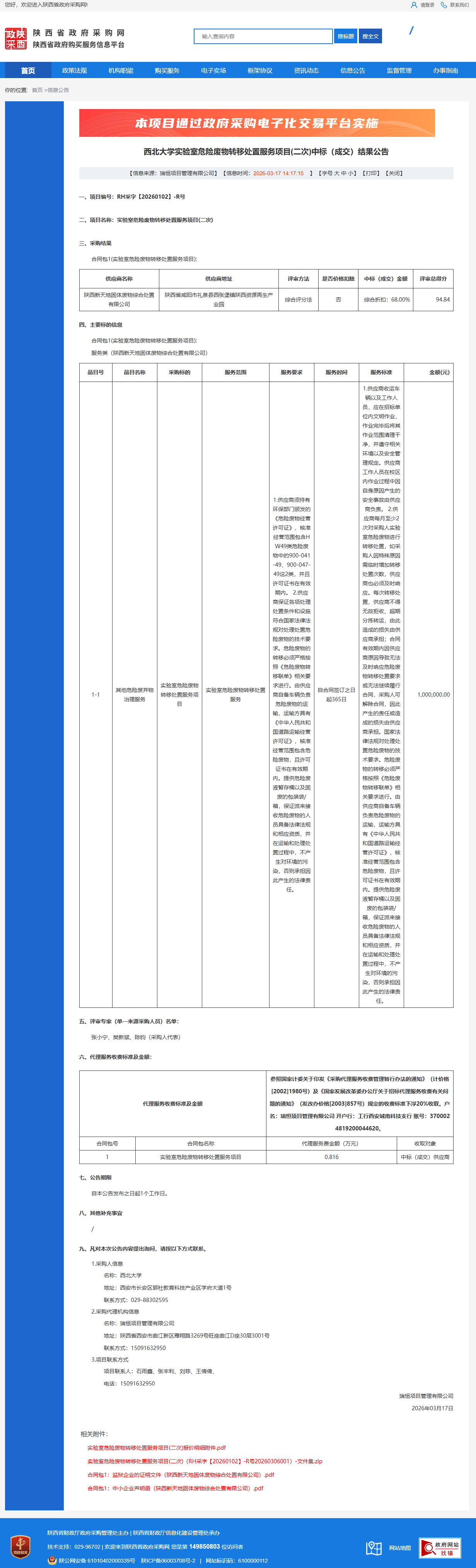 西北大学实验室危险废物转移处置服务项目(二次)中标(成交)结果公告