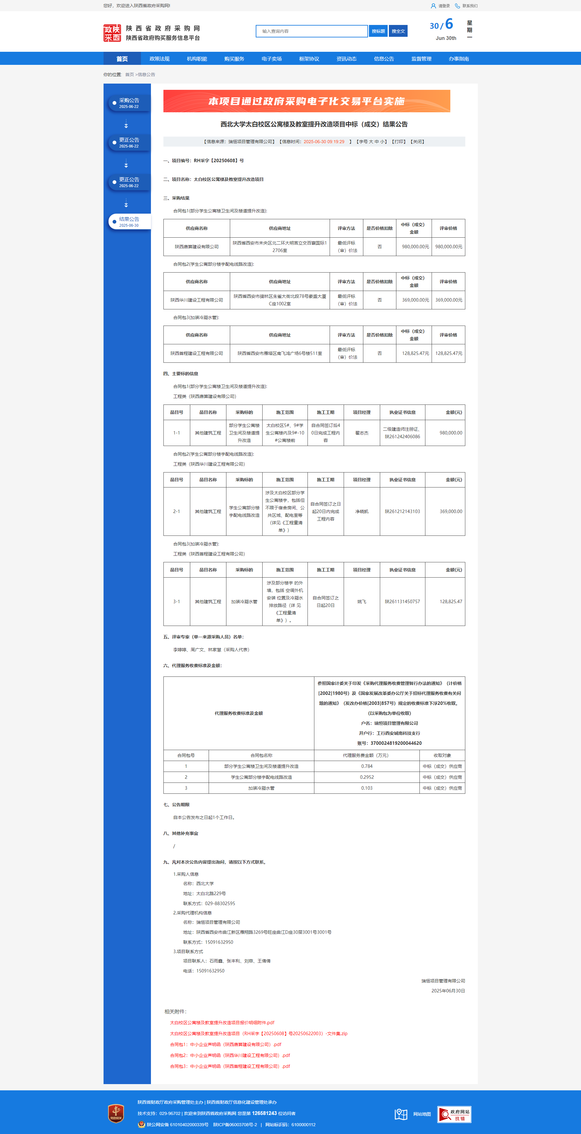 西北大学太白校区公寓楼及教室提升改造项目中标(成交)结果公告