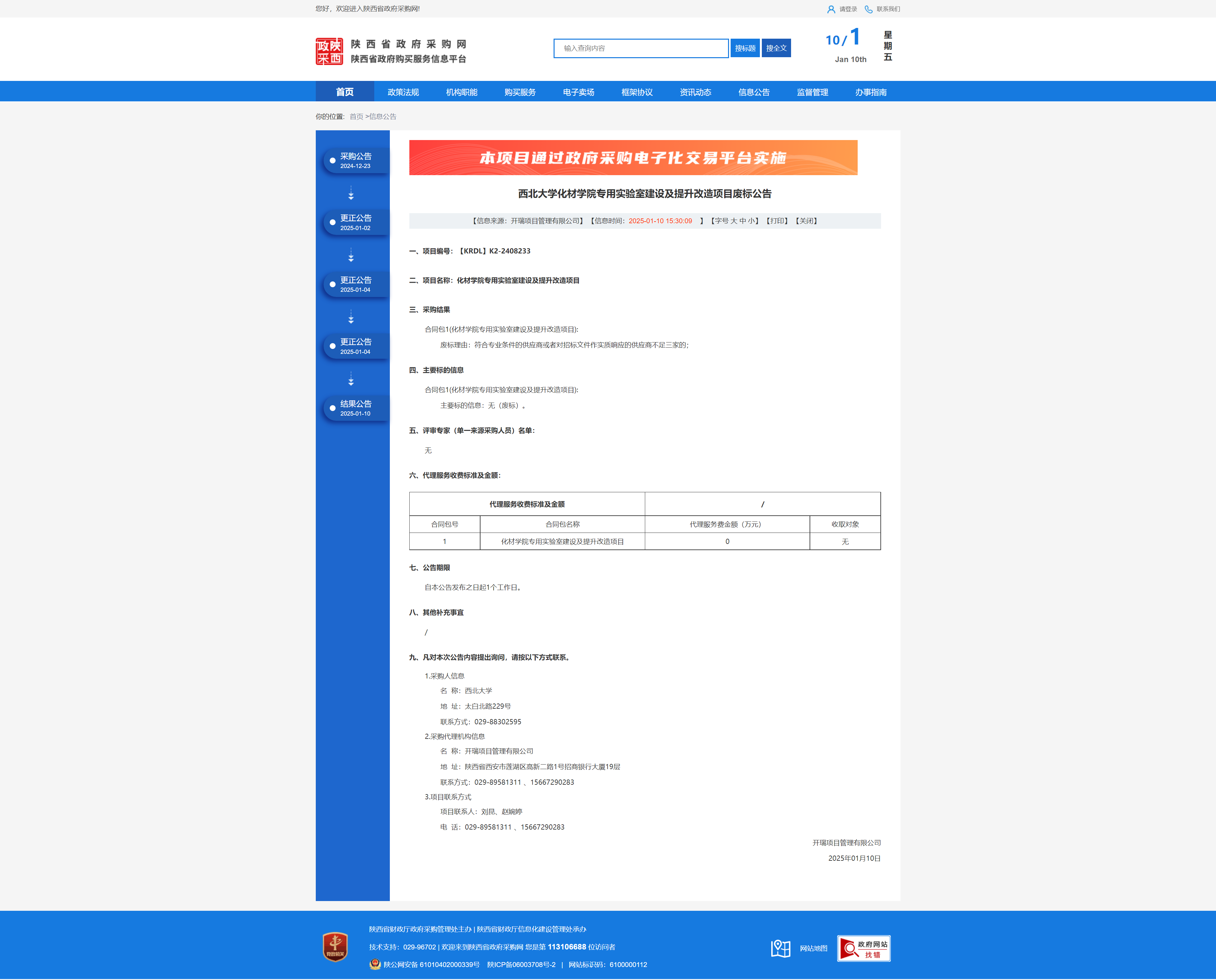 西北大学化材学院专用实验室建设及提升改造项目废标公告