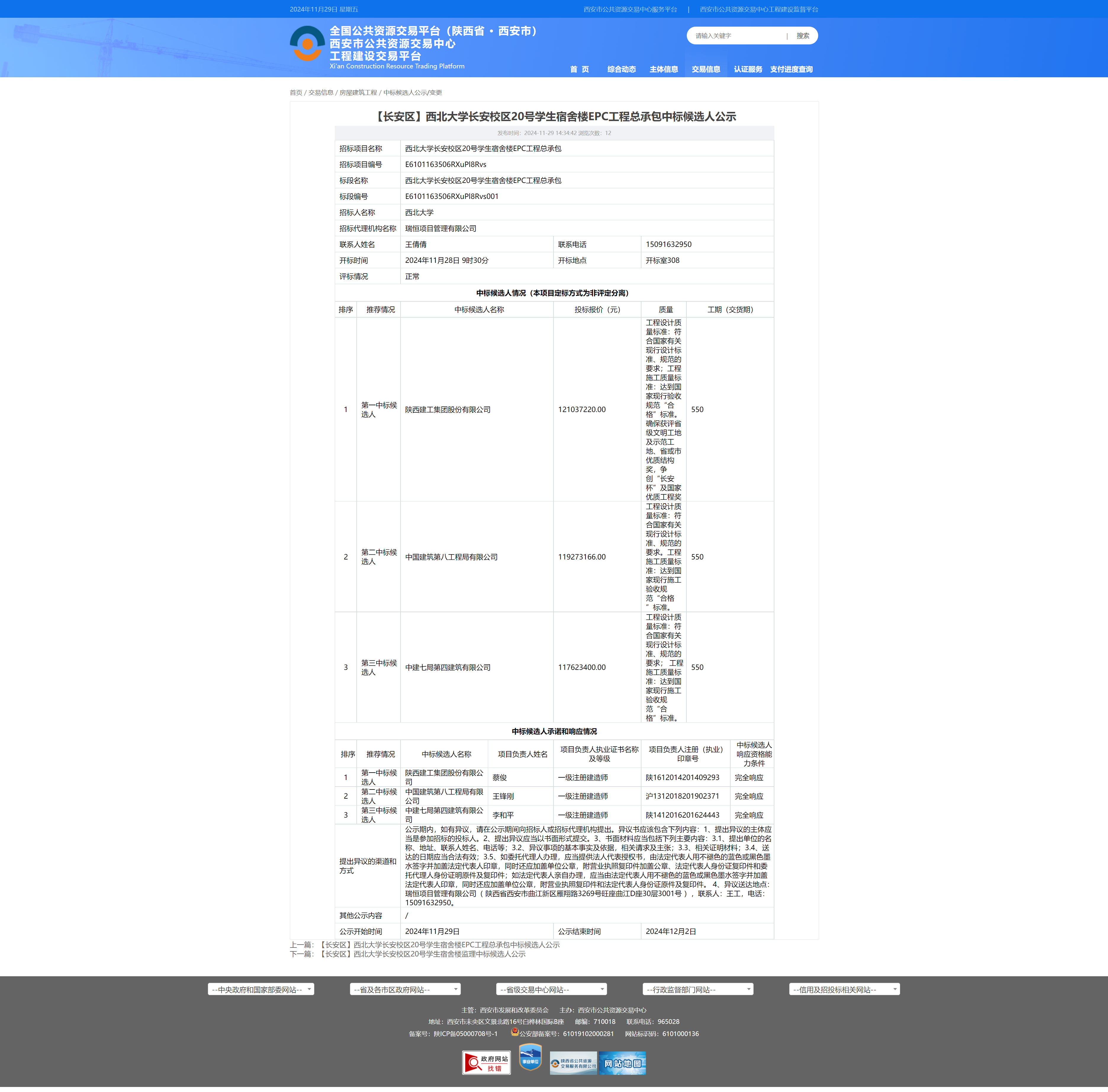 西北大学长安校区20号学生宿舍楼EPC工程总承包中标候选人公示