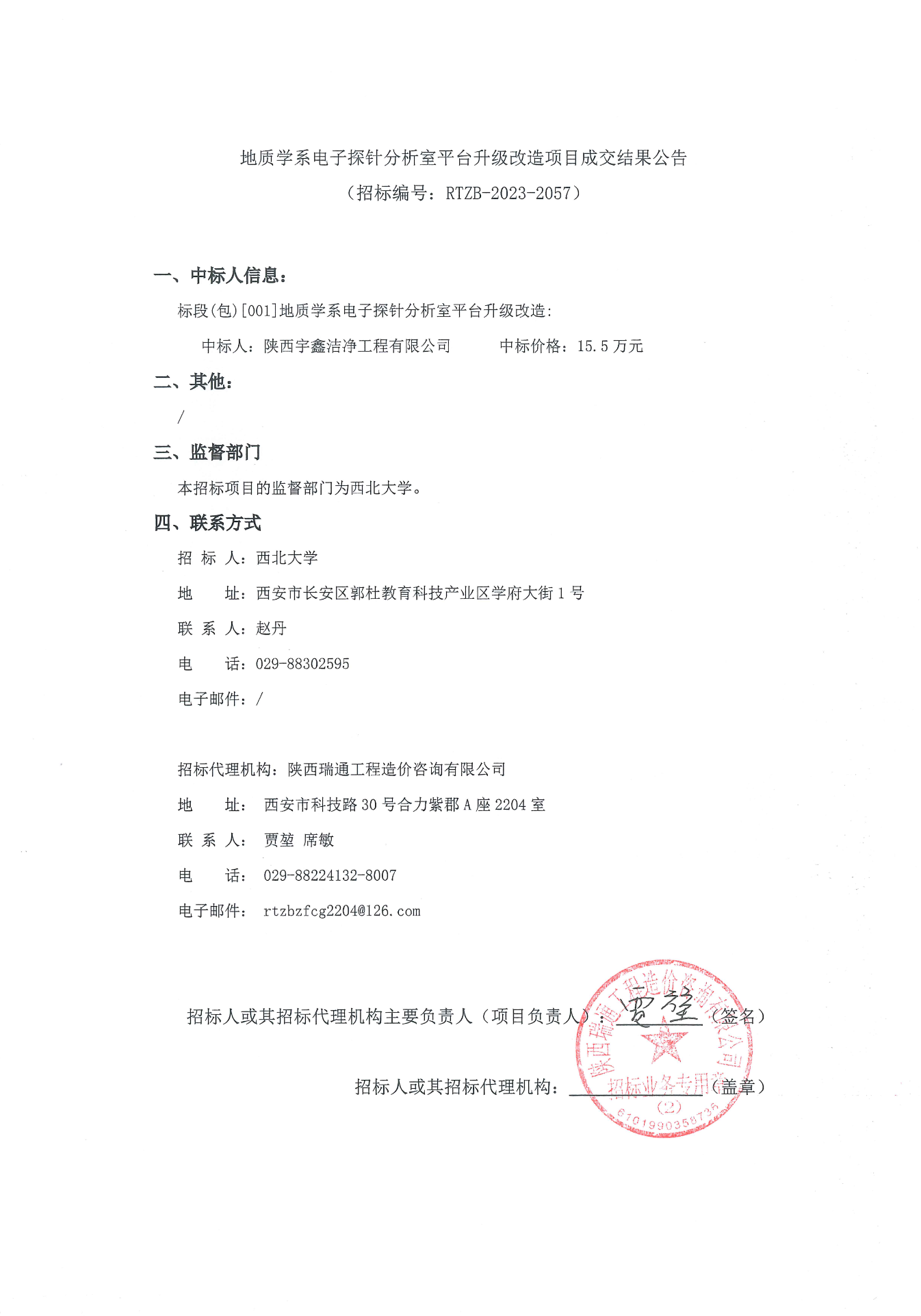 西北大学地质学系电子探针分析室平台升级改造项目成交结果公告