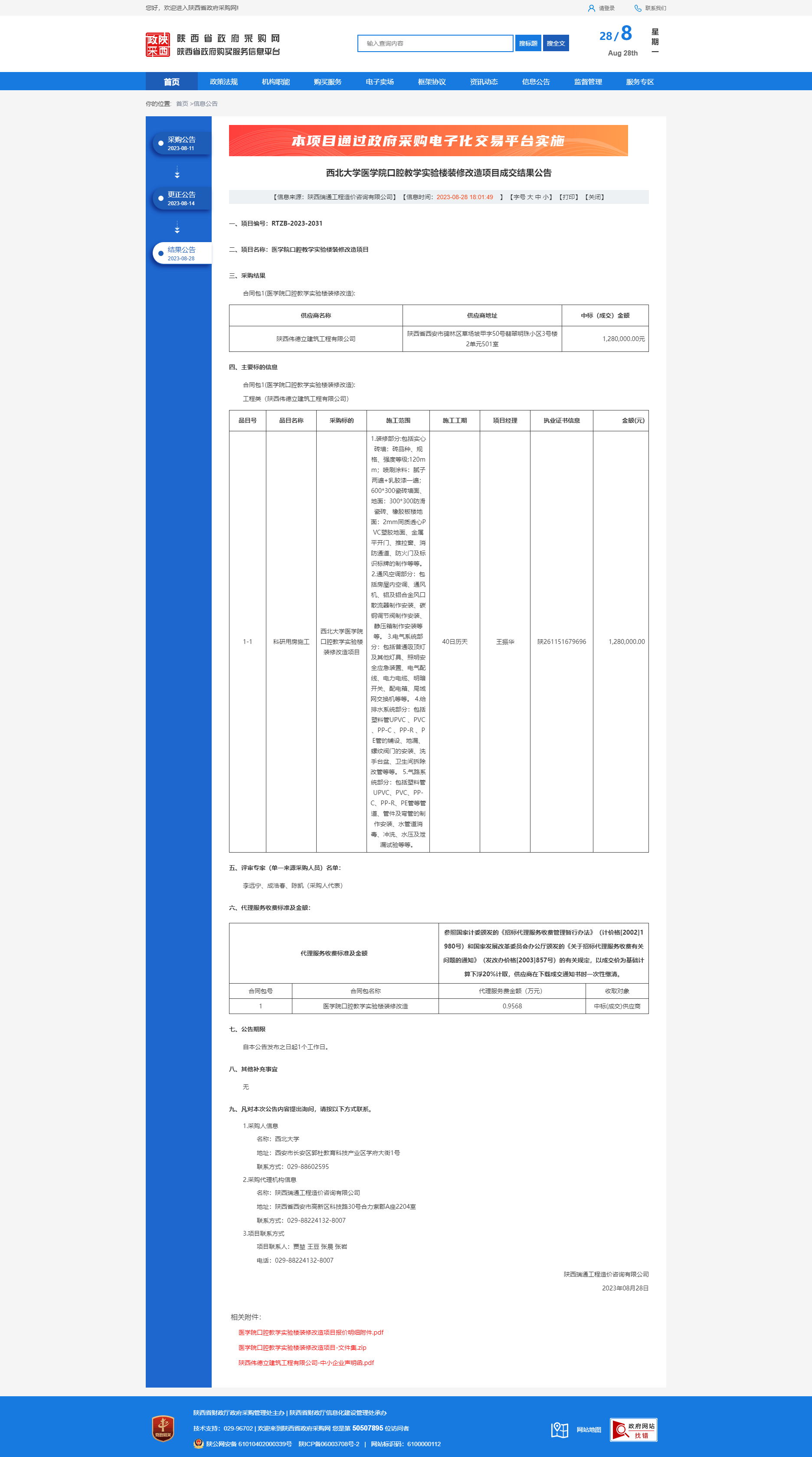 西北大学医学院口腔教学实验楼装修改造项目成交结果公告