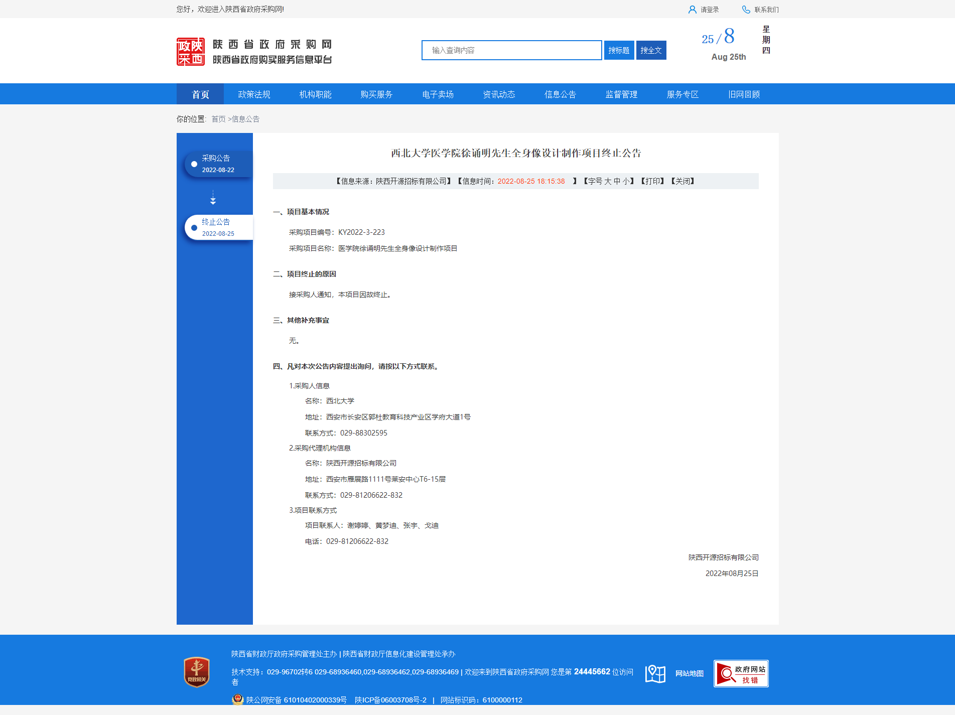 西北大学医学院徐诵明先生全身像设计制作项目终止公告