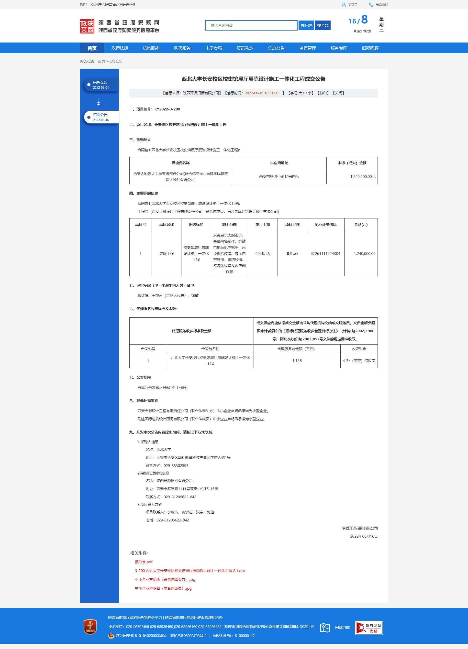 西北大学长安校区校史馆展厅展陈设计施工一体化工程成交公告