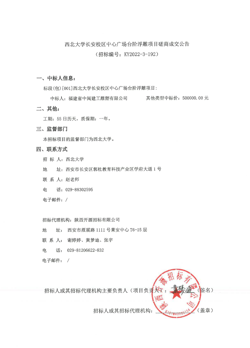 西北大学长安校区中心广场台阶浮雕项目磋商成交公告