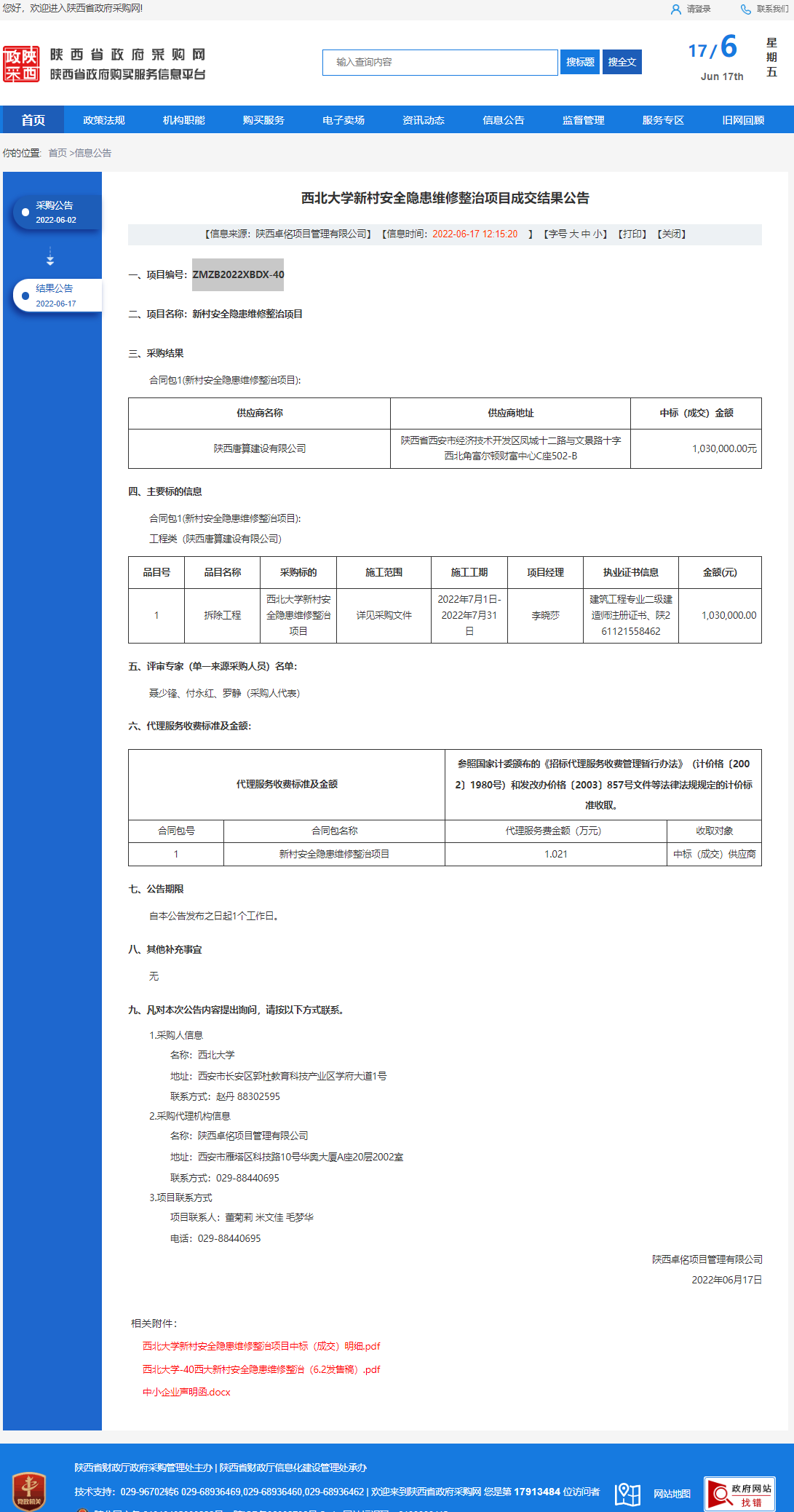 西北大学新村安全隐患维修整治项目成交结果公告