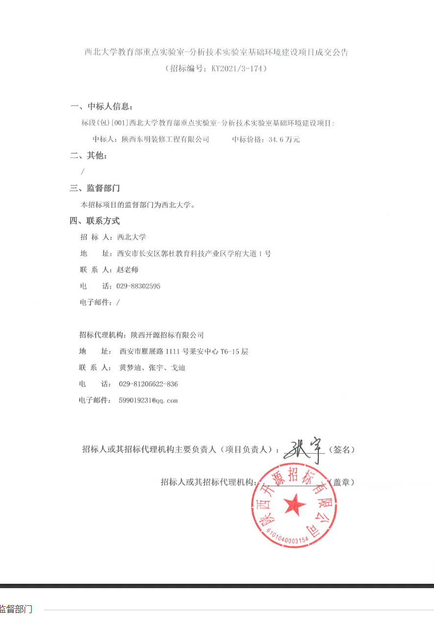 西北大学教育部重点实验室-分析技术实验室基础环境建设项目成交公告