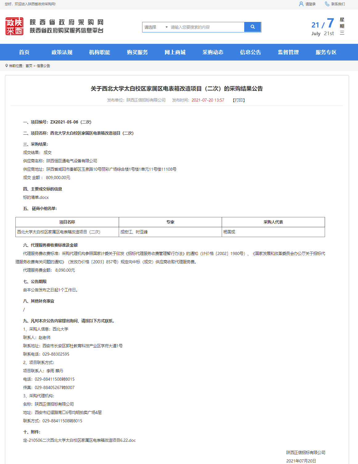 关于西北大学太白校区家属区电表箱改造项目(二次)的采购结果公告