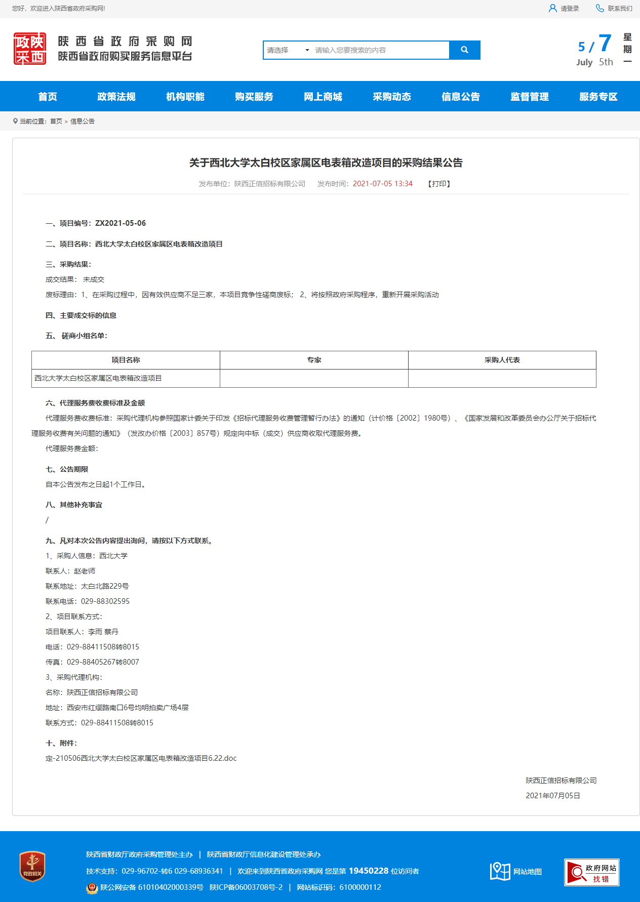 关于西北大学太白校区家属区电表箱改造项目的采购结果公告