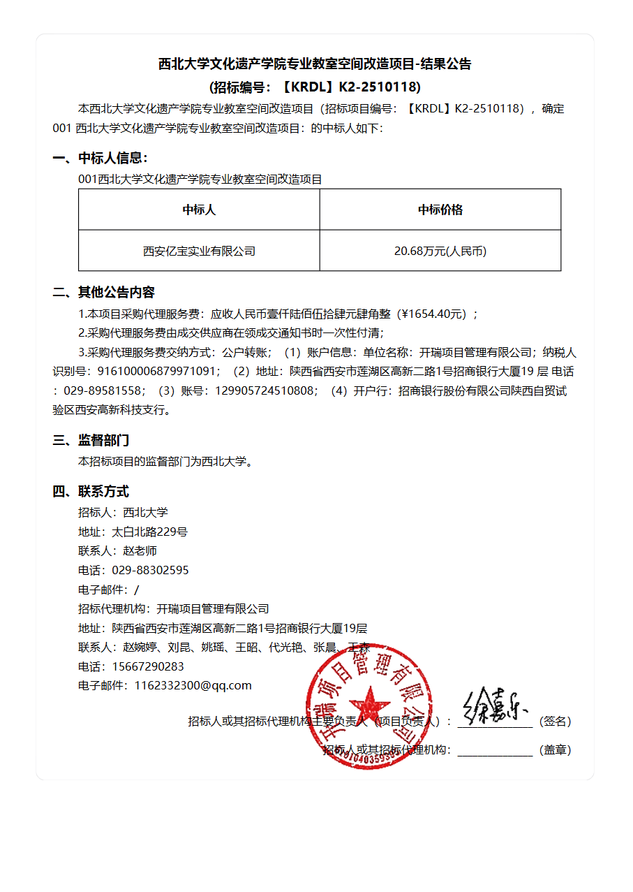 西北大学文化遗产学院专业教室空间改造项目结果公告