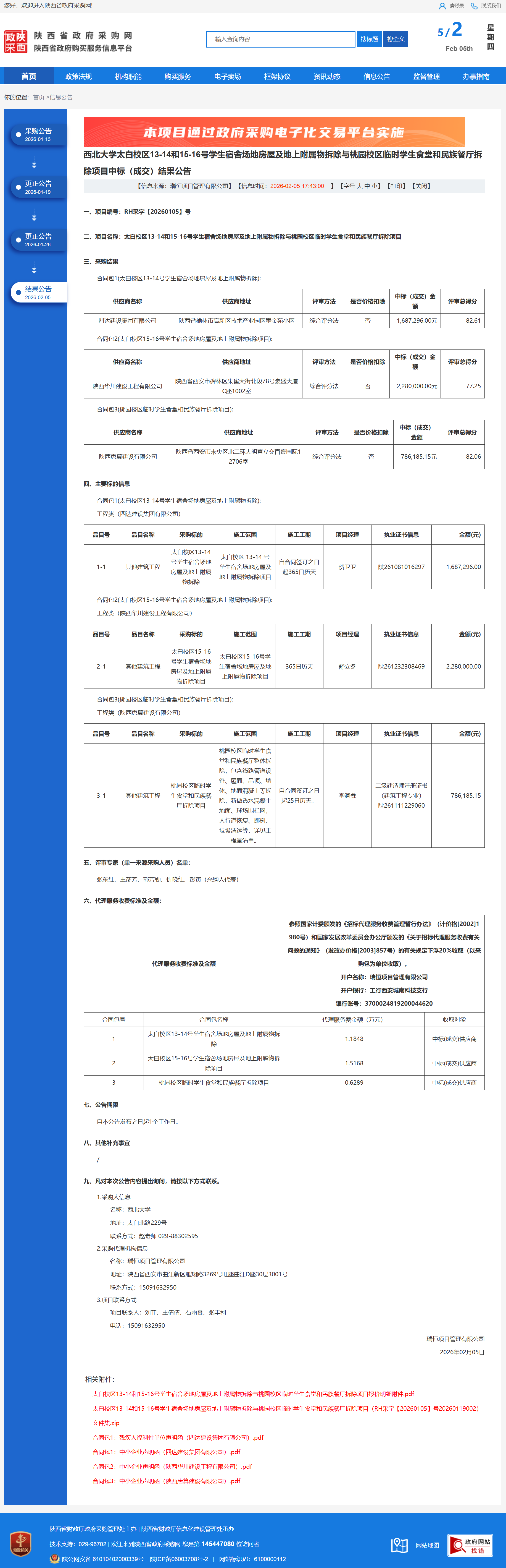 西北大学太白校区13-14和15-16号学生宿舍场地房屋及地上附属物拆除与桃园校区临时学生食堂和民族餐厅拆除项目中标(成交)结果公告